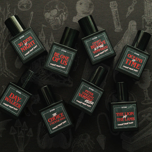 Sets of all eight Fright Night 2025 Collection fragrances. Available as a sample discovery set, or in collection sets of perfume oil extrait and Parfum.
